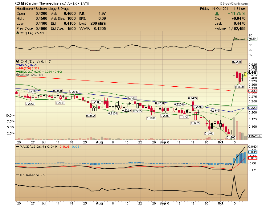 Cardium also announced that positive results from the Phase 1 / 2 clinical study of Excellarate have been accepted for publication in Wound Repair and Regeneration, the peer-reviewed medical journal of the Wound Healing Society. The article, entitled Treatment of Nonhealing Diabetic Foot Ulcers with Platelet Derived Growth Factor Gene-Activated Matrix (GAM501): Results of a Phase 1/2 trial (Mulder, et al) is expected to be published and available online in early October 2009.