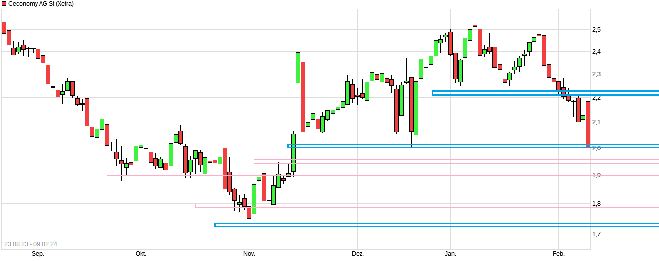 Keine leichten Zeiten im operativen Geschäft. Wird man nicht übernommen, dann fällt der Blick eben wieder mehr auf die schwache Branchensituation. Die Kursregion um 2€ hat jüngst ihre Unterstützungsfunktion verloren und es geht jetzt recht dynamisch südwärts. Damit rücken automatisch wieder alte Unterstützungen im Bereich um 1,72 und 1,65 in den Blickpunkt. Mal schauen, ob man dort wenigstens wieder etwas Käuferinteresse sehen kann.
