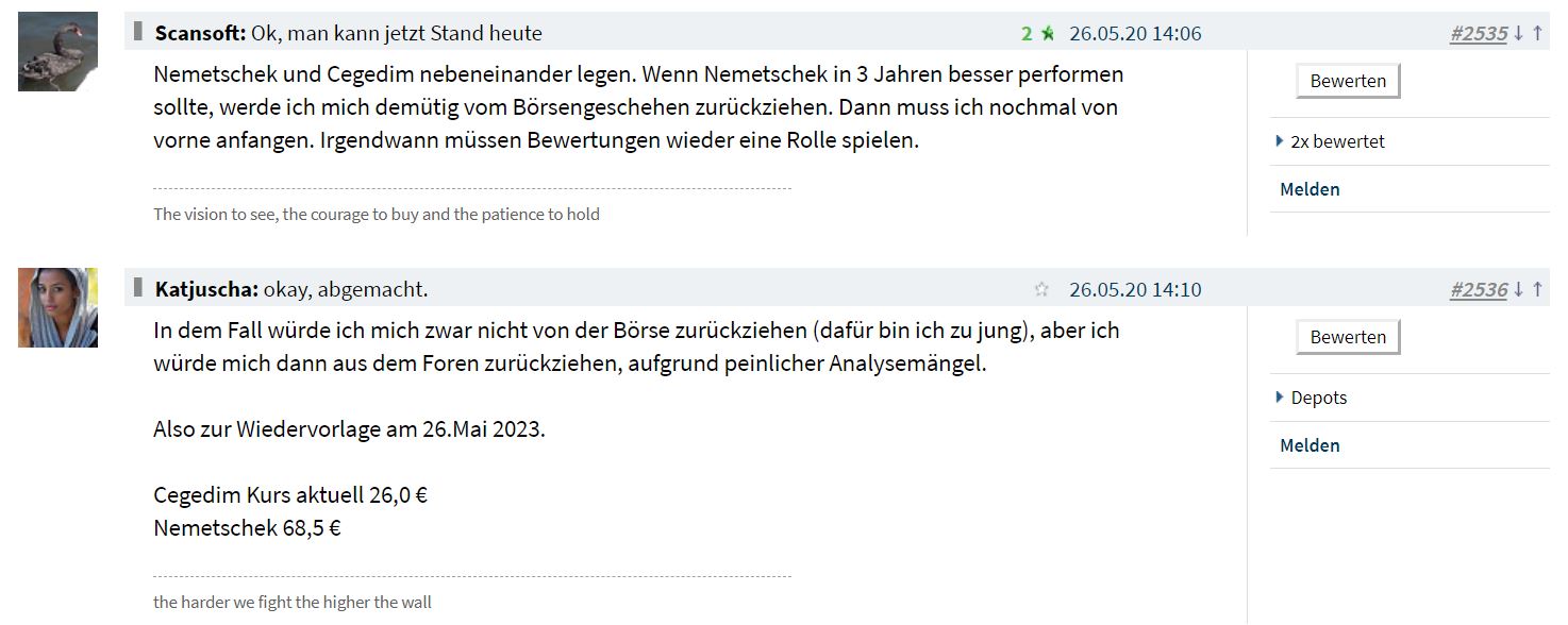 ps: was haben in letzter Zeit eigentlich immer alle mit der EK-Quote? In diversen Foren verschiedener Aktien kommen überall diese Bedenkenträger in die Threads, die sich zu den niedrigen EK-Quoten als Grund für ihre Skepsis äußern. Ist die EK-Quote derzeit medial irgendwie besonders im Fokus irgendwo gewesen, dass sie aktuell diese Renaissance als extrem wichtige Kennzahl erlebt? ... genau genommen sind es übrigens 22% EK-Quote, wahrscheinlich die nächsten Halbjahre Tendenz steigend.