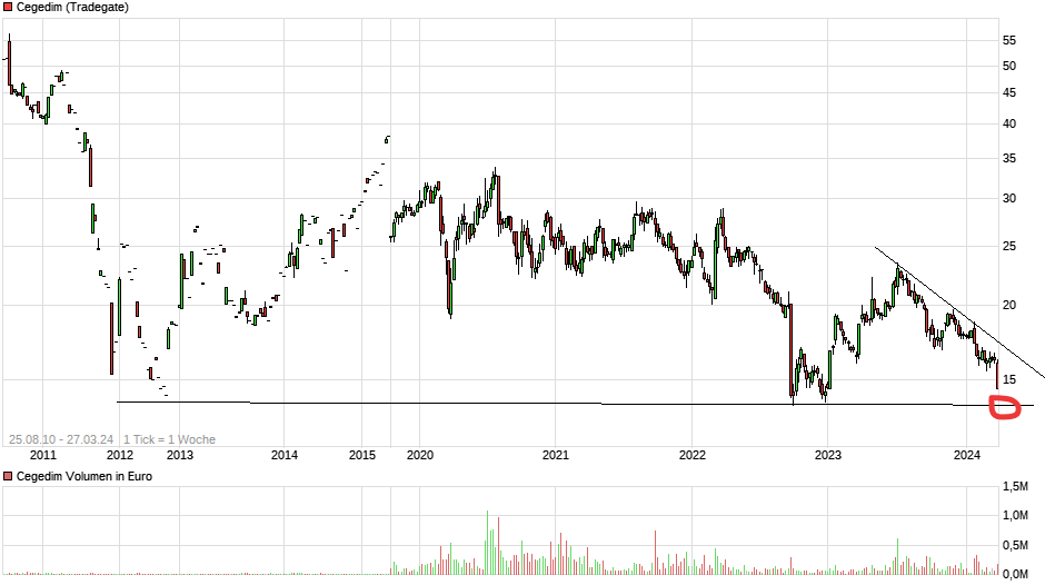 Der Case dürfte im Übrigen für viele Marktteilnehmer jetzt deutlich klarer werden, insbesondere mit Blick auf die hohe Bewertung der Peers CGM,Emis, Pharmagest. Für mich ist Cegedim nach diesen Hammerzahlen, jetzt eine der Aktien mit dem besten CRV im gesamten Markt."