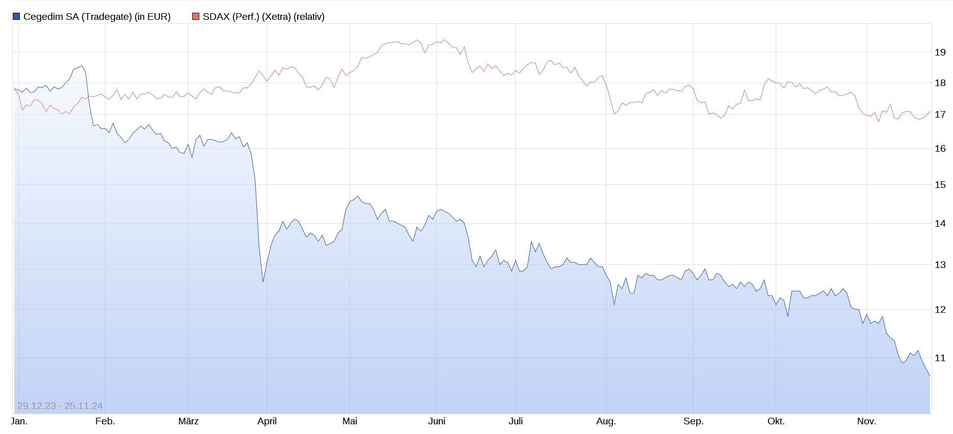 Ich werde auf keinen Fall Cegedim kaufen, definitiv nicht. Da müsste schon eine Menge passieren, ist aber weit weg von meiner Vorstellungskraft. ist ne simple Annahme, daß andere Nebenwerte viel stärker unterbewertet sein müssen.