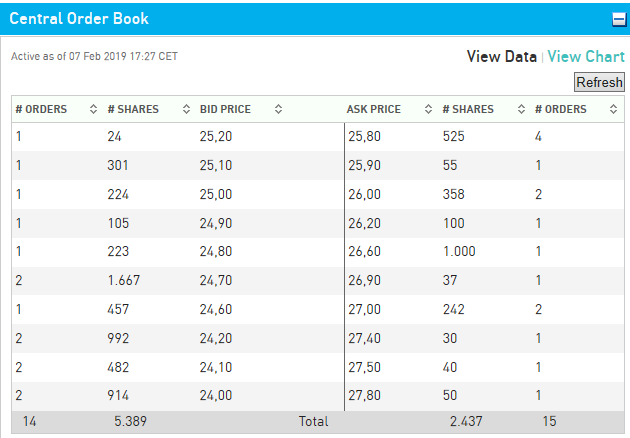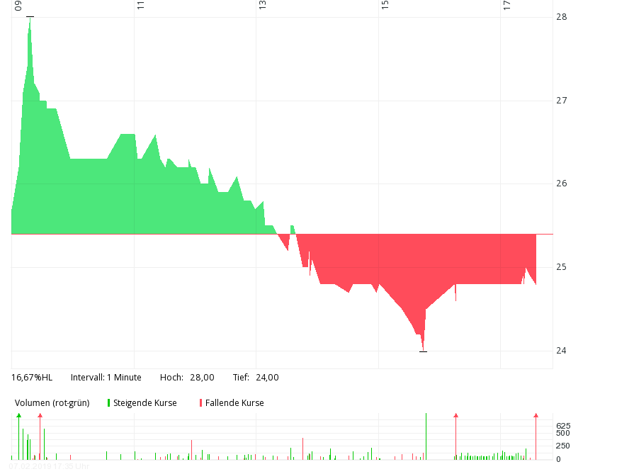 Muss man jetzt mal abwarten, wie das weiter geht. Ich hoffe, da hat ein Investor lediglich den Anfang gemacht, was seine Investition angeht. Ansonsten wüsste ich nicht, wieso jemand so aggressiv bis 28 hochkaufen sollte. Rein charttechnisch begründet kauft eher niemand so aggressiv 7-8% über dem Vortagesschluss.