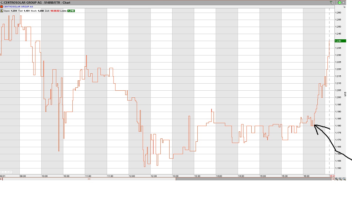 meine bescheidene Prognose für Centrosolar: heute 1,18/1,19 Schlusskurs, Montag morgens Anstieg und dann gegen Nachmittag