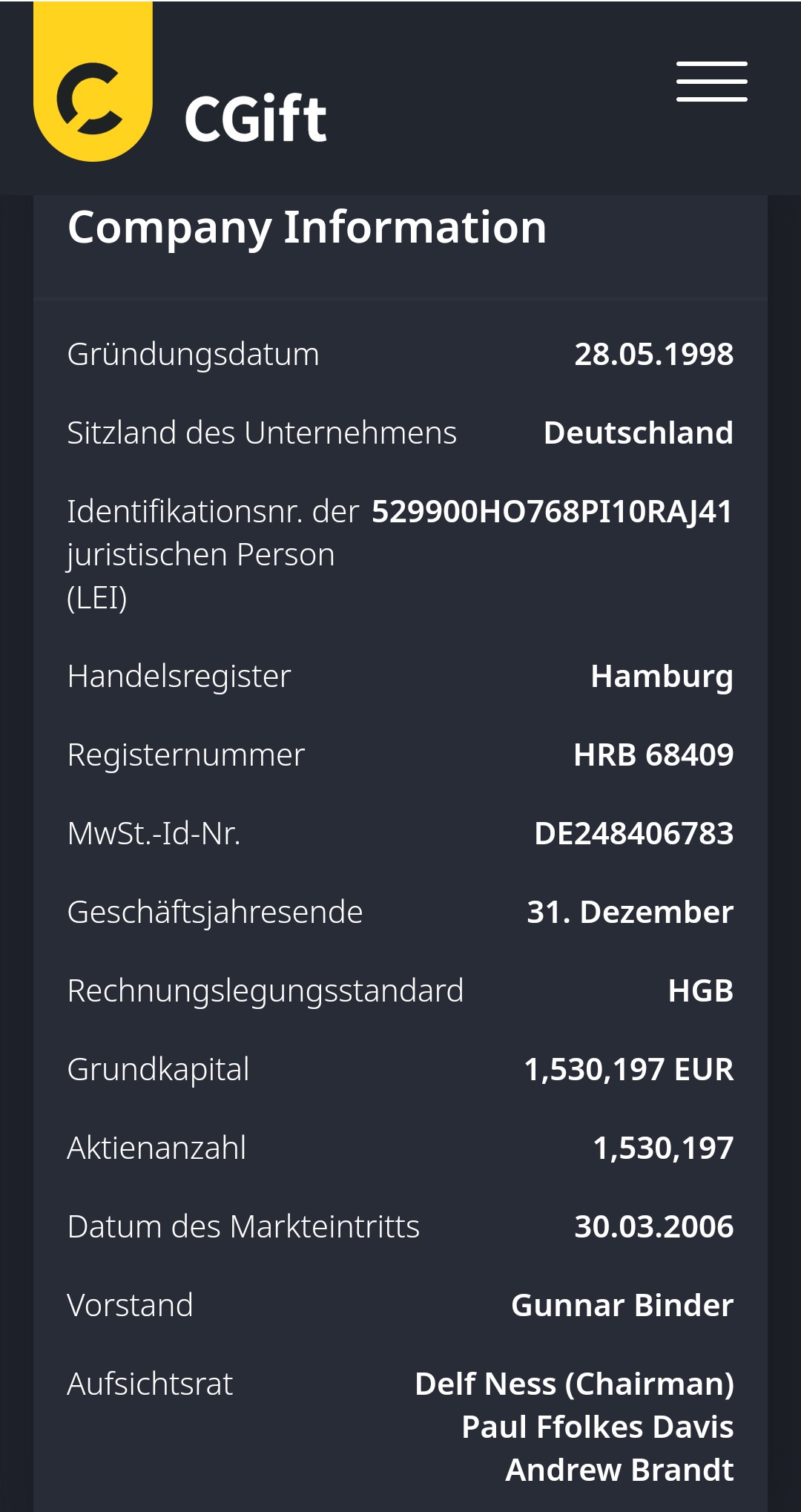 Die Cobalt AG (mittlerweile Palmaille Invest AG) von Philip Moffat hat der CGift AG 2018 ein neues Darlehen über gut TEUR 100 gewährt.