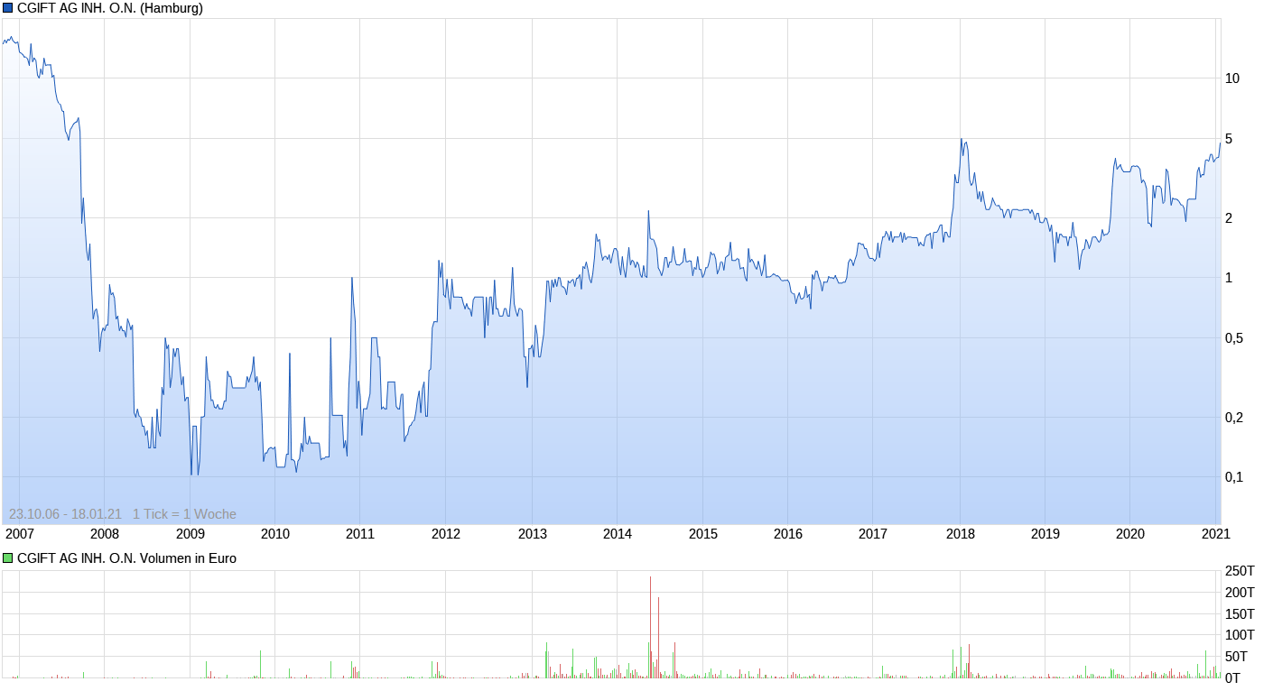 Ich frag mich die ganze Zeit, warum der Redakteur von Boersengefluester.de den Chart der CGift AG mit der Bemerkung "Heisse Micro Cap-Wette" am Donnerstag veröffentlicht hat.