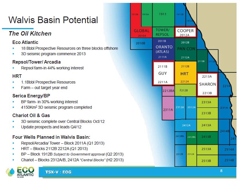In particular, the Zamba prospect is now a priority target whilst the Tapir trend has been removed from the prospect inventory. Zamba is interpreted to be a carbonate target overlain by salt and which is on trend with recent Angolan discoveries. Following a re-evaluation, the main part of the Zamba prospect now stands at a gross mean unrisked potential resource estimate of 375mmbbls. The partnering process has been initiated and updates on this will be provided as appropriate. Should this process be successful, the Company plans to drill this prospect in 2014.