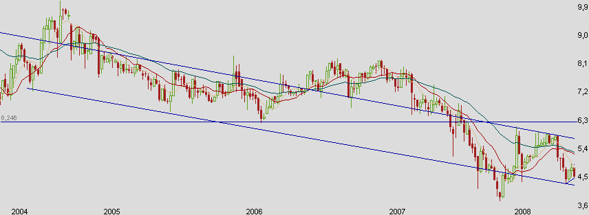 Was sagt das aus? Richtig, es bedeutet dass die Kurse steigen oder sinken, in diesem Fall gehe ich von einer Fortsetzung des Trends aus. Was ist aber, wenn die Indizes nachgeben? Dann ist nicht auszuschließen, dass wir nochmal auf 3,80 zurückfallen - lassen wir uns überraschen...