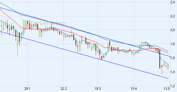 Was sagt das aus? Richtig, es bedeutet dass die Kurse steigen oder sinken, in diesem Fall gehe ich von einer Fortsetzung des Trends aus. Was ist aber, wenn die Indizes nachgeben? Dann ist nicht auszuschließen, dass wir nochmal auf 3,80 zurückfallen - lassen wir uns überraschen...
