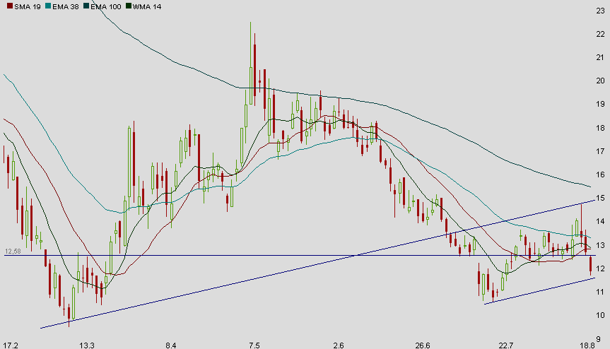 Ende August bis Mitte September hat ein Wimpel (trendbestätigende Formation) das Chartbild dominiert. In einem günstigen Umfeld ist die Aktie dann bis zu ihrem Hoch auf 4,27€ gestiegen. Was wir jetzt beobachten können, ist eine eher seltene Formation die allgemein "Diamant" genannt wird. Ich gebe zu, dass sie nicht pefekt ausgebildet ist, aber die typischen Eigenschaften sind vorhanden!