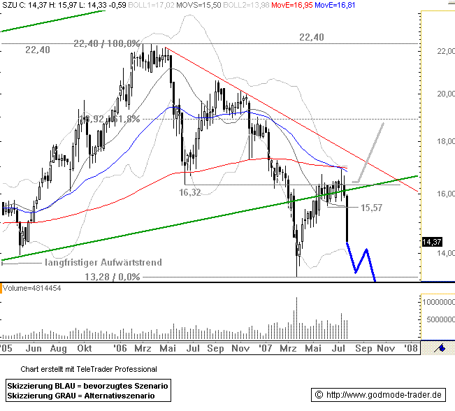 In den letzten Tagen fiel mir die Südzucker-Aktie auf. Betrachten wir zunächst den Chart: