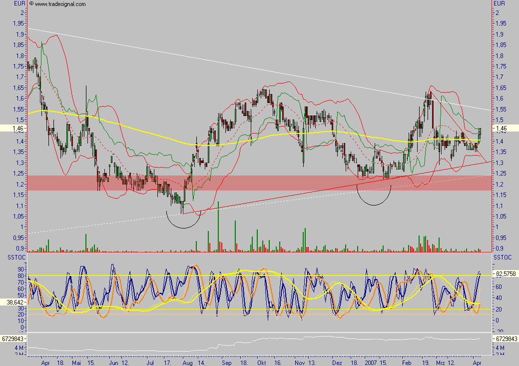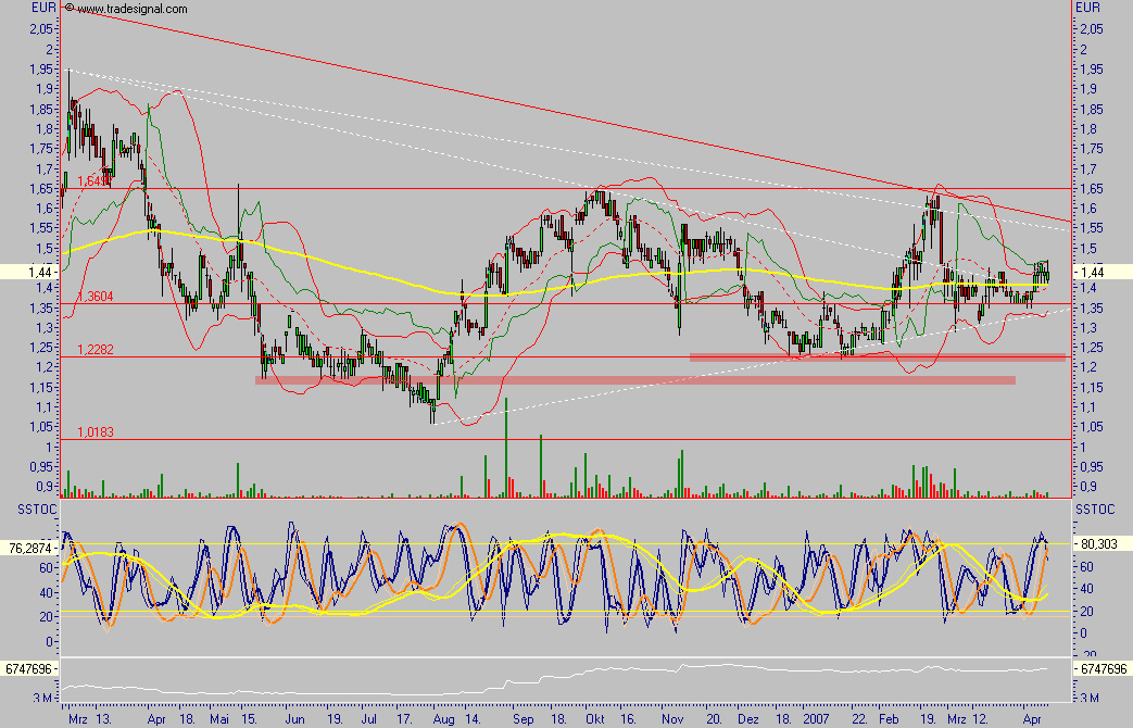 Im Bereich e-Publishing (Softwaretools & Utilities, e-tainment-Software) habe die bhv-Software erfolgreich integriert werden können. Hier sei der Umsatz anorganisch um 174% auf 3,7 Mio. EUR gestiegen und das EBIT habe sich um 160% auf 0,61 Mio. EUR erhöht. Auf dieser Basis gehe der Vorstand davon aus, die gesteckten Ziele für das Jahr 2006/07 (Umsatz: 51,1 Mio. EUR, EBIT: 2,8 Mio. EUR, EPS: 0,13) erreichen zu können.