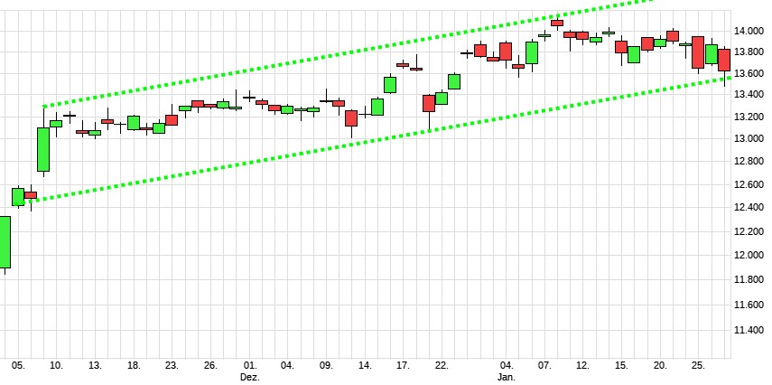 man sieht das auch ohne Linien. Das Chartbild spiegelt das Verhalten der Anleger wider. Das Verhalten ist immer gleich.