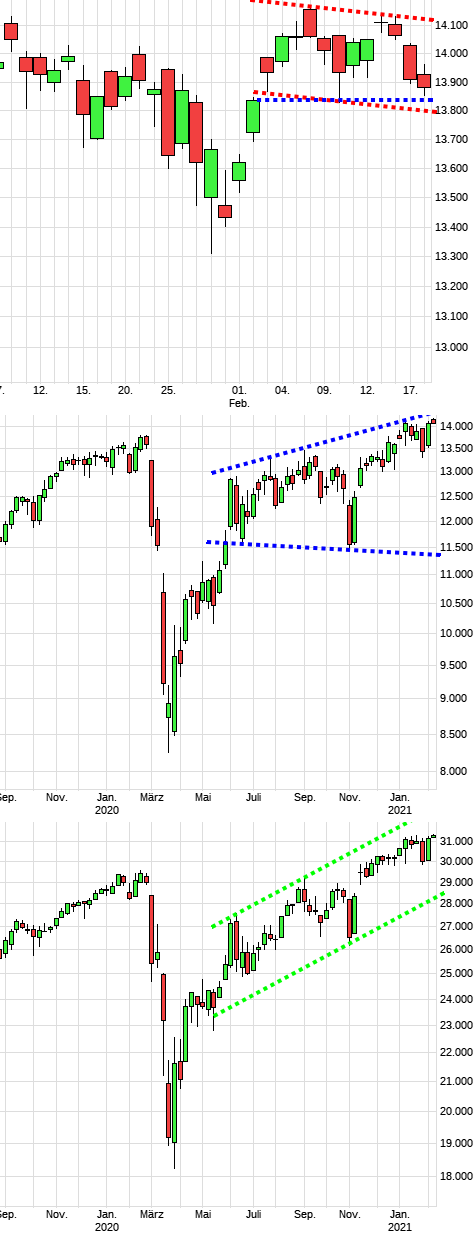 In der Hektik habe ich ganz vergessen, dieses Jahr eine Jahreseinschätzung abzugeben. Nunja, wer wagt sich das schon in diesen Zeiten? Keiner, also muss ich wieder ran. Crash dieses Jahr? Wohl kaum. Gut jetzt hab ich wohl 90% enttäuscht, aber ich begründe es auch. Die Frage die keiner beantworten kann ist, wann die Krise für jeden sichtbar und spürbar wird. Was ich zur Zeit sehe ist, dass die Menschen noch Geld haben und das bisher Gesparte an die Börse bringen. Wie lange das noch dauert, weiss keiner. Was man weiss ist, dass die neue Währung die nächsten 5 Jahre eingeführt werden soll. Somit ist noch etwas Zeit und man wird kaum bereits dieses Jahr den Menschen den Boden unter den Füssen wegziehen. Dies ist aber nötig, damit sie das neue System mit digitaler Währung akzeptieren. Jetzt kann jeder selbst überlegen, ob dies bereits dieses Jahr geschehen wird. Was aber sicher ist, dass wir mit Charttechnik und Handelssystem, auch diese Trendwende ausfindig machen werden. Wichtig ist sich nie an der Börse für eine Richtung festlegen, bevor der Trend gebrochen ist, da man dann psychologisch nicht in die Gegenrichtung einsteigen kann. Dies ist meine Einschätzung und sollte morgen der Crash beginnen, dann kann es uns recht sein. Hauptsache der DAX bewegt sich. Charts: DAX-Tageschart, DAX-Wochenchart, DOW-Wochenchart.