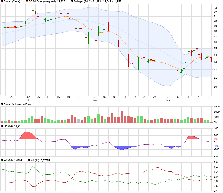Die Kurse abwärts fortgesetzt und im Bereich 12,1 (ca. Mitte 12,8 … 11,4)