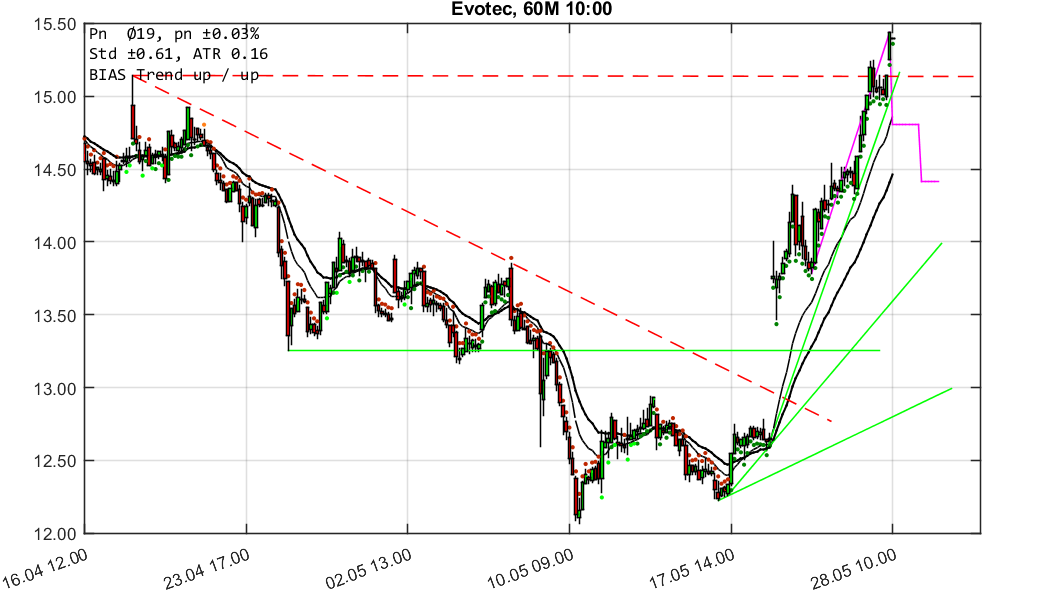 Es ist aber so, dass in der aktuellen Situation die LVs garantiert Speerspitzen setzen werden. Die werden das Momentum auf ihre Weise nutzen. Davon gehe ich fest aus. Meint: Stehen wir beispielsweise bei 15,80 EUR geht der kurz in ein paar Minuten in die Knie. Da wir aktuell aber in einem Long-Momentum sind, spekuliere ich auf einen direkt anschließenden Wiederanstieg.