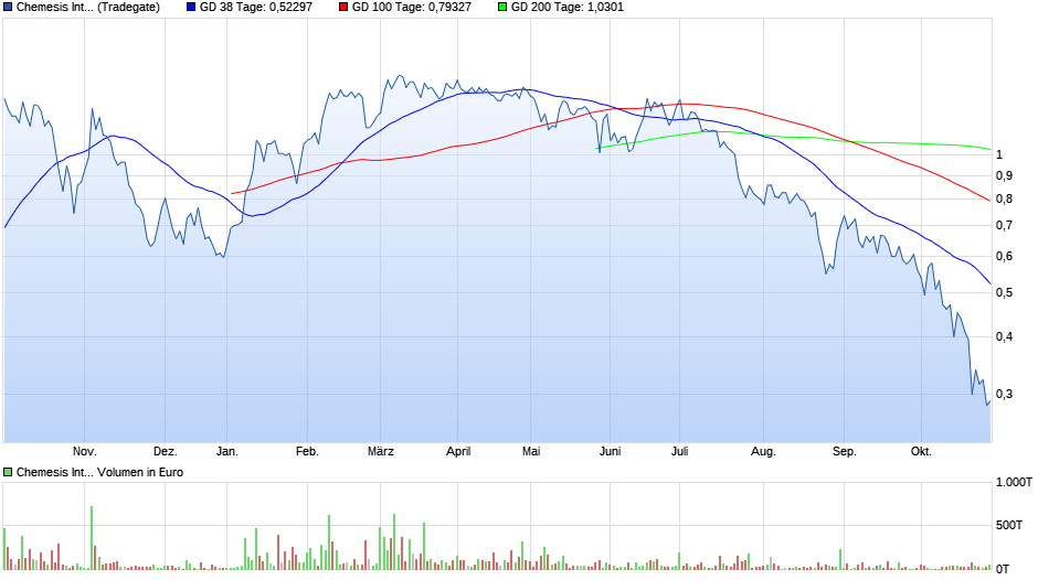 4. Deine Behauptung Aktionäre hätten hier bisher nicht verdient (#1219) ist dann doch der Hammer. Im Gegensatz zu der "normalen Pusheraktie", bei der es ein Kurzes hoch und dann der Abverkauf losgeht, lief Chemesis mehrere Monate sehr gut (auch mit längerer Seitwärtsbewegung)...übrigens wie der gesamte Cannabis Markt. Wie nachzulesen ist, bin ich hier am 17.09. (0,66 €) eingestiegen...Ausgestiegen bin ich zwangsweise durch Auslösen des SL im Juli (Unterschreiten der 1 € Marke). Kannst du rechnen? Ich bin mir sicher, dass Aktionäre hier auch gewonnen haben.