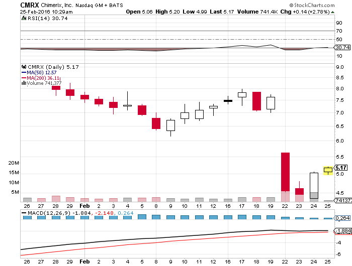 Am Tag der Zulassung notierte die Aktie von CMRX leicht um Plus (8.69$), im Großen und Ganzen schien die Zulassung jedoch weitestgehend eingepreist gewesen zu sein.
