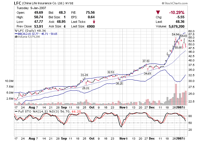 Mainland financials also suffered steep losses following their stellar run, with China Life (2628.HK: Quote, Profile , Research), the biggest drag on the H shares, tumbling 6.6 percent to HK$23.90.