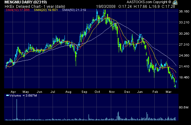 HK heute: 2319 MENGNIU DAIRY 7.96 -12.04 -60.20           3,638,719 449,507