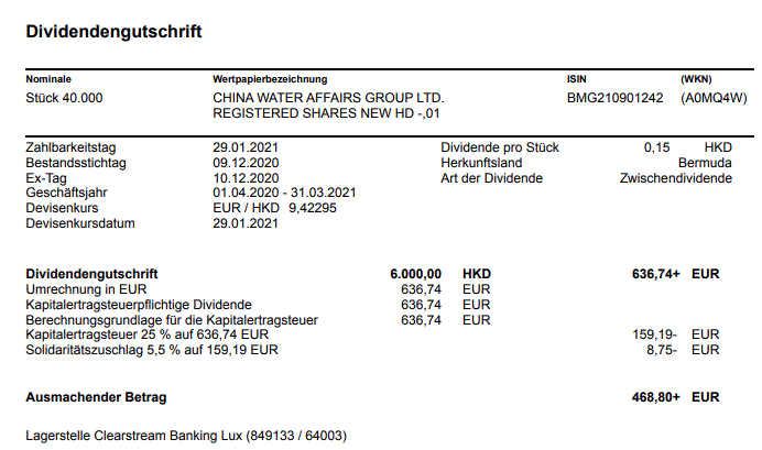 - Die Jahreshauptversammlung wiederum fand 2020 erst im September statt. Wie den Beschlüssen hier entnehmbar, wurde dort erst über die Schlußdividende entschieden, welche wiederum im Februar 2021 zur Auszahlung kam (ich hatte sie am 2.2. auf dem Konto).