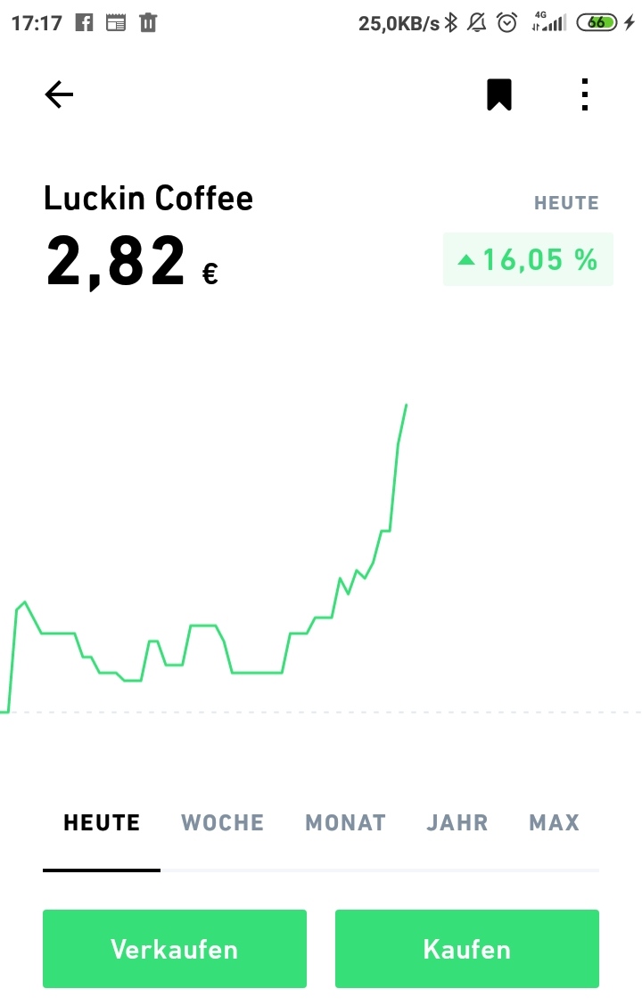 Bin bei 3,48 raus. Damit ~50% Gewinn gemacht innerhalb einer guten Woche. Wird vermutlich zu früh gewesen sein und ich sehe durchaus das Potential für mindestens 7€, aber andererseits ist mir der Laden einfach zu suspekt und die Informationspolitik geht gar nicht. Die Versammlung ist jetzt schon 4 Tage her und es gibt nach wie vor keine offizielle Nachricht. Lu soll weg sein, das ist natürlich eine gute Nachricht, aber dann kam gestern die Nachricht, dass einige die Legitimität der Abstimmung anzweifeln. Ich meine wir wissen so gut wie nichts über Luckin. Die sollen in China ja riesig sein, aber wenn man sich mal auf den chinesischen sozialen Medien umschaut, ist diesbezüglich doch eher tote Hose. Scheint also bisher (noch) nicht der absolute Trend zu sein. Sucht man hingegen bei Instagram nach bspw. Starbucks wird man mit Ergebnissen erschlagen. Natürlich gibt es die Läden und es scheint auch einigermaßen zu laufen, aber für mich ist Luckin ein großes Mysterium und daher extrem schwer einzuschätzen. Großes Potential, aber eben auch großes Risiko. Alle erwarten, falls die Zahlen denn irgendwann mal kommen, positive Nachrichten, aber auch da bin ich skeptisch. Es wird ja immer gesagt, dass Luckin auf sehr viel Cash sitzt, aber da bräuchte man erstmal eine Bestätigung und nicht nur die Zahlen vom letzten Jahr.