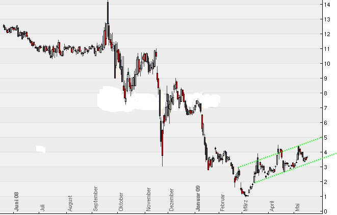 dennoch malt mir das chart von bodmann ein lächeln ins gesicht - danke bodmann.auch wenn der anstieg im chart mir zeigt das wir wohl keine massiven kurssprünge wie bei der boa sehen werden wird es dennoch die woche aufwärts gehen. wenn dann die presse noch mitspielt sollten wir am freitag die 4$ von oben sehen.