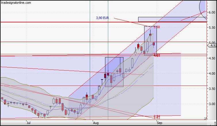 Erst ab einem Kurs unterhalb von $4.80 stehen bei mir alle Zeichen auf Sell, alles darüber bedeutet Buy!