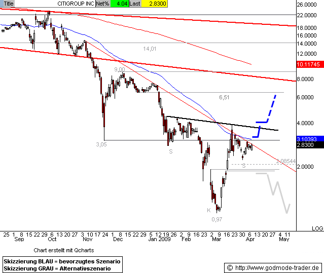 Ich denke die geschönten Quartalsberichte von Goldman Sachs, JP Morgan und hier Citigroup werden die Kurse nochmals in die Höhe treiben.