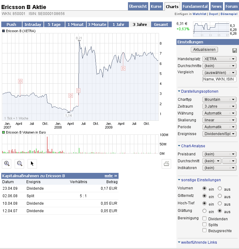 hier zu Ericsson - schau Dir den Chart an