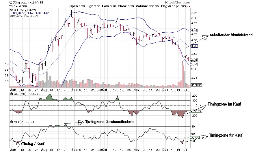 Mr. Pandit versucht das auch grade wieder, schnell TARP zurückzahlen und bischen Nachrichten verbreiten vor den Q4 Zahlen. Würde ich drauf wetten das da einiges zu lesen sein wird in den nächsten 2 Wochen. Warum? Weil die Institutionen, die jetzt die neuen Aktien für $3.15 gekauft haben, die für $4 los werden wollen. Und die wollen kein Jahr drauf warten, ganz sicher nicht. Das dürfen dann diejenigen tun, die sich die Aktien für $4 haben andrehen lassen.