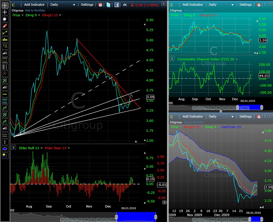 Ich beschäftige mich nicht seid 10 Jahren mit C sondern erst seid Anfang 2009, als mir klargeworden ist das die Aktie mit $1 wohl etwas unterbewertet ist. Sollte aber reichen um ein einigermassen korrektes Bild im momentanen Zustand zu erhalten. Es ist ja jetzt nicht mehr relevant, das es bis 2005 oder so noch etwas war, was man auch als Bank bezeichnen könnte.
