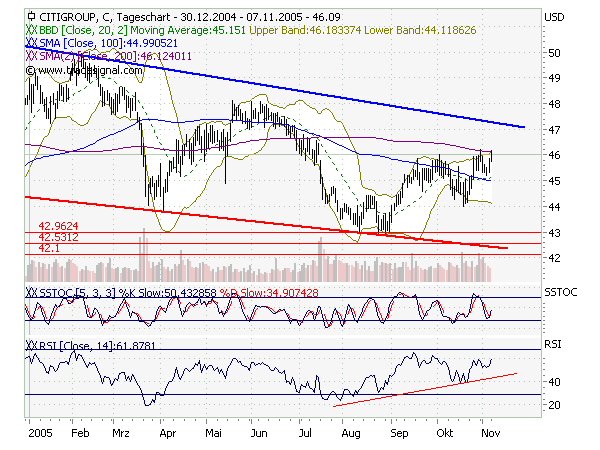 Der Titel ist mit einem KGV von 9,9 für 2006, einer Dividendenrendite von 4,0% und einer EK-Verzinsung von knapp 20% gegenüber anderen Finanzdienstleistern äußerst attraktiv bewertet. Mit einem Quartalsgewinn von 5,1 Milliarden USD kann man ohne weiters ziemlich zufrieden sein.