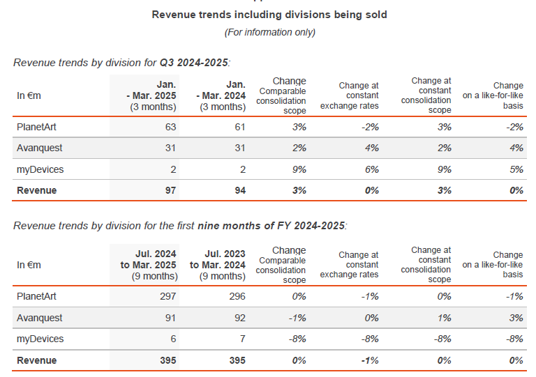 FR0013426004 - CLA) gibt bekannt, dass die Gespräche mit dem Atlantic Park Fonds von General Atlantic Credit und dem Managementteam von PlanetArt über den möglichen Verkauf der PlanetArt-Sparte, der am 3. März 2025 angekündigt wurde, voranschreiten. Die endgültigen Bedingungen für den Verkauf stehen jedoch noch nicht fest.