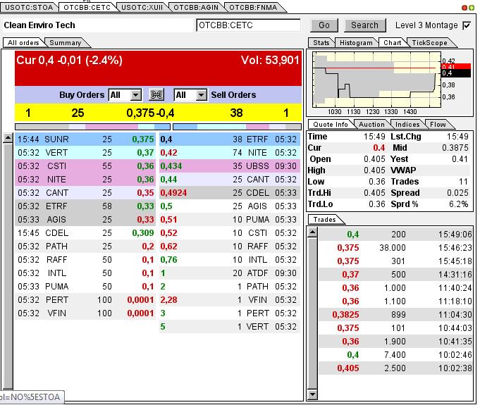 | 2 | 1.346 | CLEAN ENVIRO TECH könnte seine Investoren überaus | MaxStark | stksat|228759717 | 13.05.15 13:43 | |