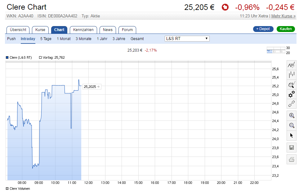 Ein Abschlag von 10% zum NAV ist absolut okay und gerechtfertig. Bei Mißtrauen und bedenklichen Positionen auch mehr. Clere besteht nur noch aus Vermögen und Verlustvorträgen, hat keinerlei operatives Risiko.