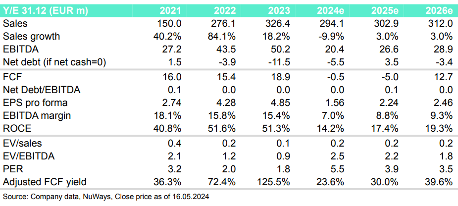 . . . schätzt den konzerngewinn je aktie (EpS) auf 1,56 € (2024) und 2,24 € (2025), https://www.more-ir.de/d/29843.pdf - damit lässt sich leben . . . bei einem börsenkurs von nur 8,95 € !