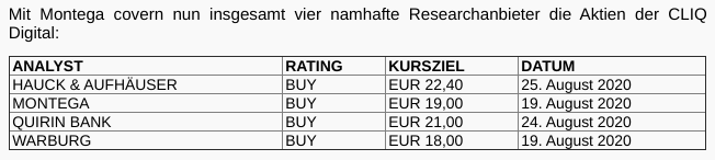 Anders als die meisten anderen Anbieter positioniert sich CLIQ Digital auch als Streaming-Komplettanbieter bzw. All-in-One-Plattform. Das bedeutet, dass Abonnementen Zugriff auf die gesamte Media-Bibliothek aus Filmen, Serien, Musik, Hörbüchern und bald auch Spielen erhalten und somit ein medienübergreifendes Angebot vorfinden. Daraus resultiert u.E. auch eine deutlich größere Zahl an potenziellen Kunden, die CLIQ Digital durch gezieltes Direktmarketing adressieren kann.