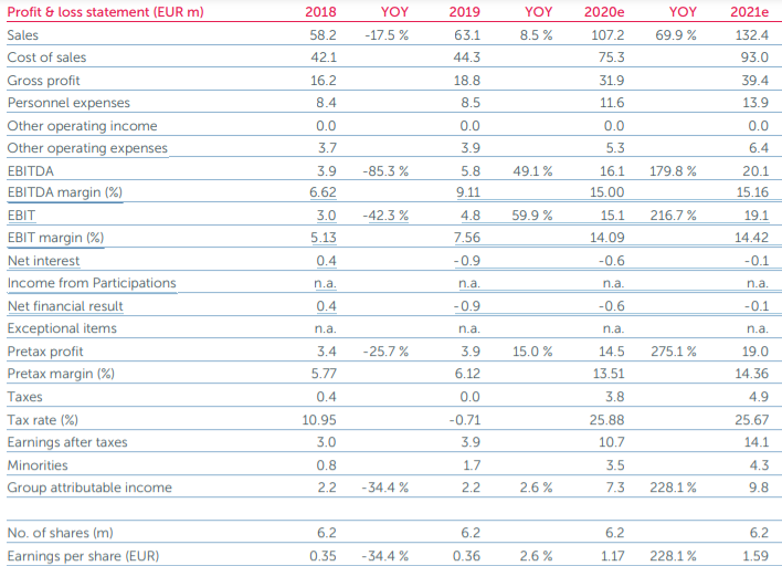 Erst einen Tag vor(!) Bekanntgabe der Rekord-Umsatz und -Ergebniszahlen, am 9. Februar 2021, kam es zu einem Ausbruch nach oben. Die Aktie schoß bis auf 21,40 Euro. Charttechnisch ist das, wenn es sich nicht noch als veritable Bärenfalle herausstellt, eine Bestätigung des Aufwärtstrends und damit ein Long–Signal.