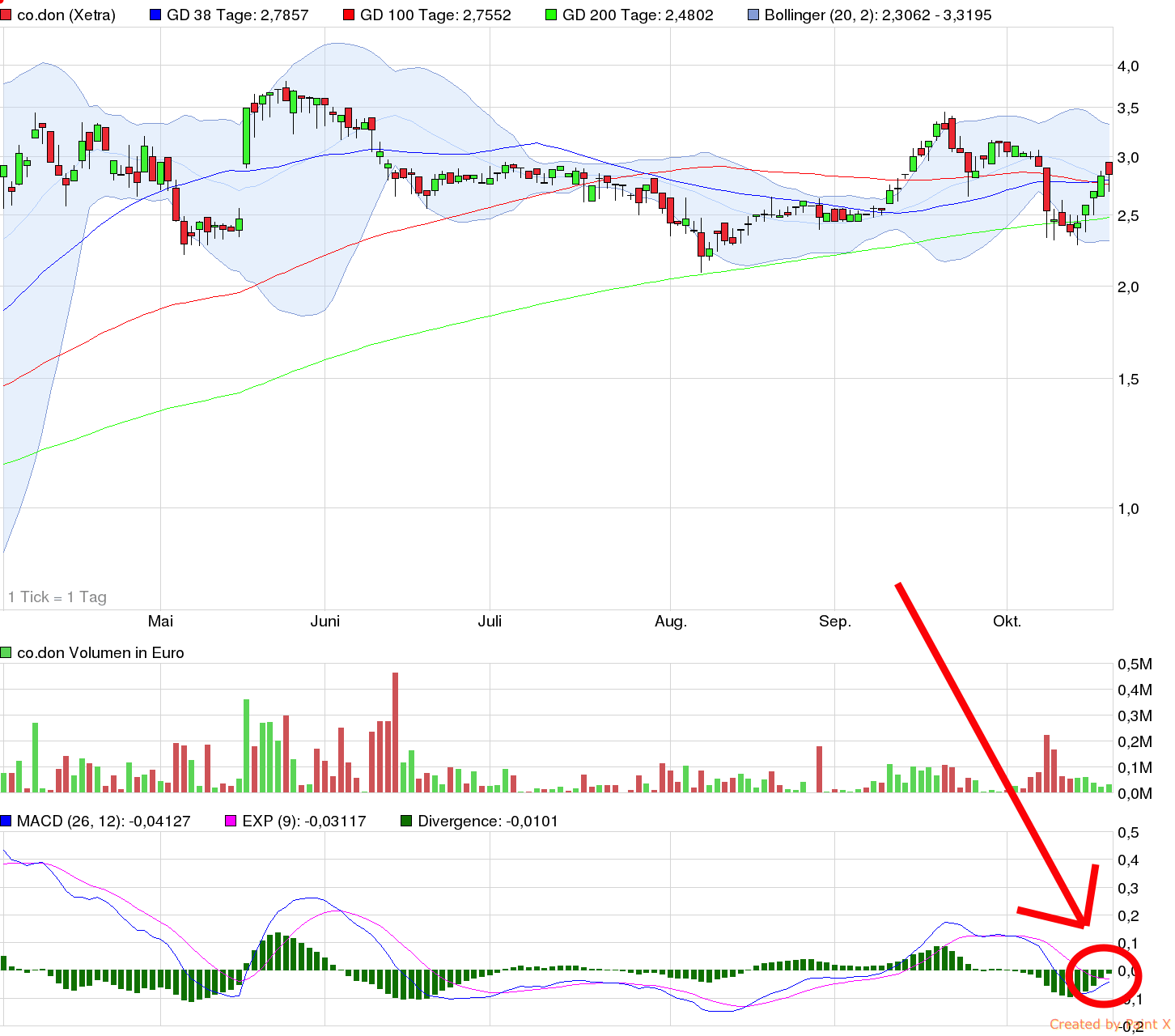 für die Marktschwäche der letzten Tage hält sich co.don sehr gut, ganz wird man sich