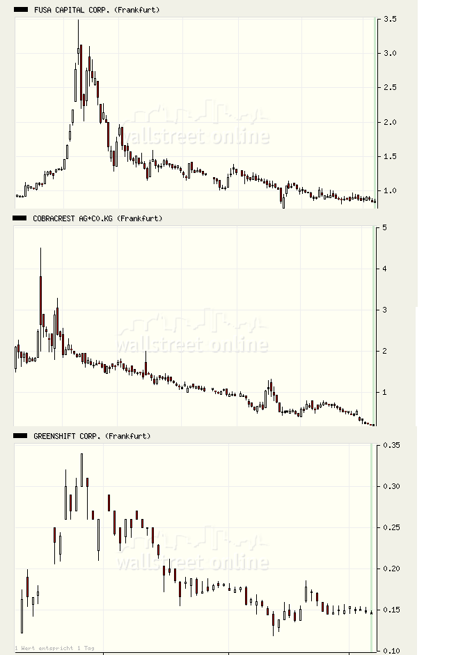 Die Tatsachen sind gleichwohl noch völlig unklar – eine Einschätzung zum jetzigen Zeitpunkt nicht möglich. Laut FAZ 5. April 2004 (Finanzmarkt S. 21) soll in der Vergangenheit die Cobracrest AG bzw. das Umfeld des Unternehmens mit hoffnungsfrohen Unternehmensprognosen aufgefallen. Für das Geschäftsjahr 2005 soll ein Umsatz von über 35 Mio € in Aussicht gestellt, tatsächlich im September 2005 beendeten Geschäftsjahr 2004/2005 jedoch nur ein Umsatz von 4,2 Mio € erzielt worden sein. Wir haben dies nicht geprüft. Vor dem Hintergrund ist die zwischenzeitliche Börsenkapitalisierung der Cobracrest AG von nach Schätzung der FAZ angeblich bis 120 Mio € aus den wirtschaftlichen Rahmendaten nicht unbedingt nachvollziehbar. Wesentliche Ursache für den hohen Börsenwert war ein Übernahmeangebot der Carlyle International Inc., New York, zu 5,23 € je Aktie.