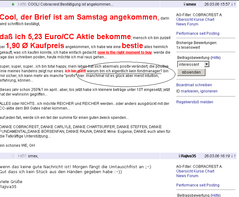 | 8 | 533 | Cobracrest-Aktie gibt Lebenszeichen von sich | Cocolino | Moneygeng | 25.04.21 03:26 | |