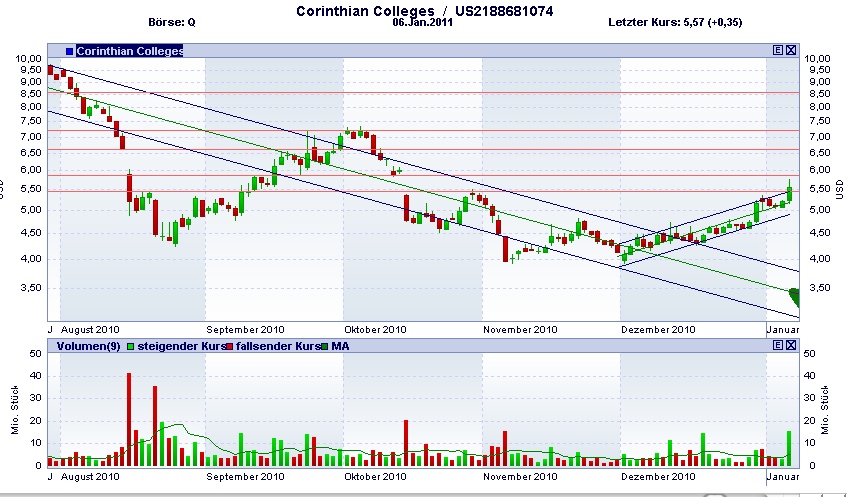 Corinthian shares jumped 95 cents, or 31.47 percent, to $3.98 by midday. The stock has traded in a range of $1.24 to $5.61 over the past 52 weeks.