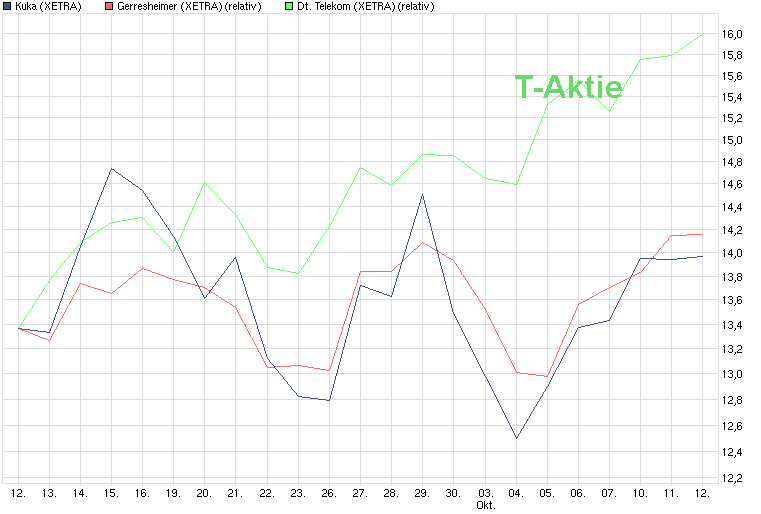 Nicht traurig sein mit deinen etwas fußlahmen Kuka & Gerresheimer Aktien. Hast halt bei deinem ständigen T-Aktien-Dauerbashing auf Ariva nicht die deutlichen Winke mit den Zaunpfählen gesehen die objektive User mit ihren Posting rechtzeitig gaben als die T-Aktie zu absoluten Schnäppchenpreisen notierten. Und auch Charttechnik scheint nicht zu deinem Wissensgebiet zu gehören, sonst wärst du spätestens beim Spung über den Bereich 8,80/85 in die T-Aktie long gegangen.