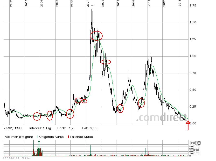 Wer in diesen Non-performer unbedingt einsteigen will, sollte nicht auf thread-bekannte Pusher hören, die seit mehr als 2 Jahren falsch liegen, sondern einfach mal in aller Ruhe abwarten, wie ein anerkannter Börsen-Guru zu sagen pflegt.