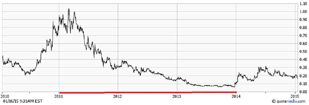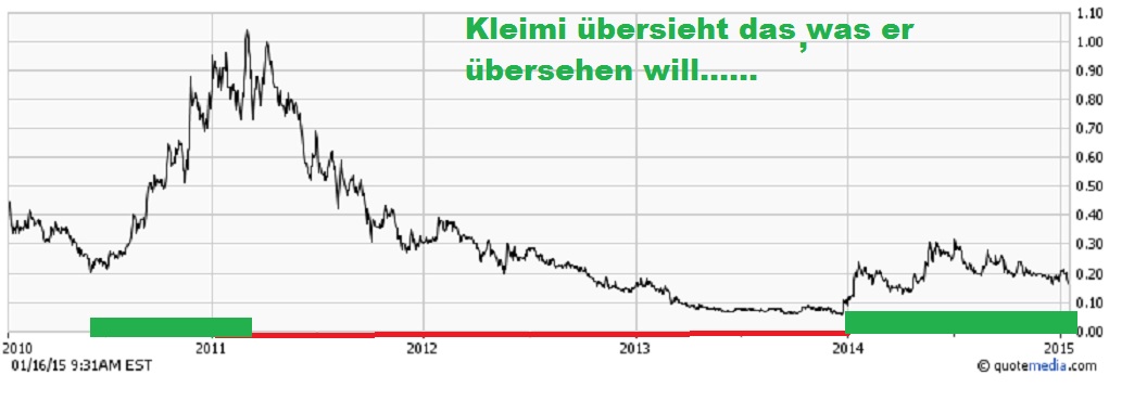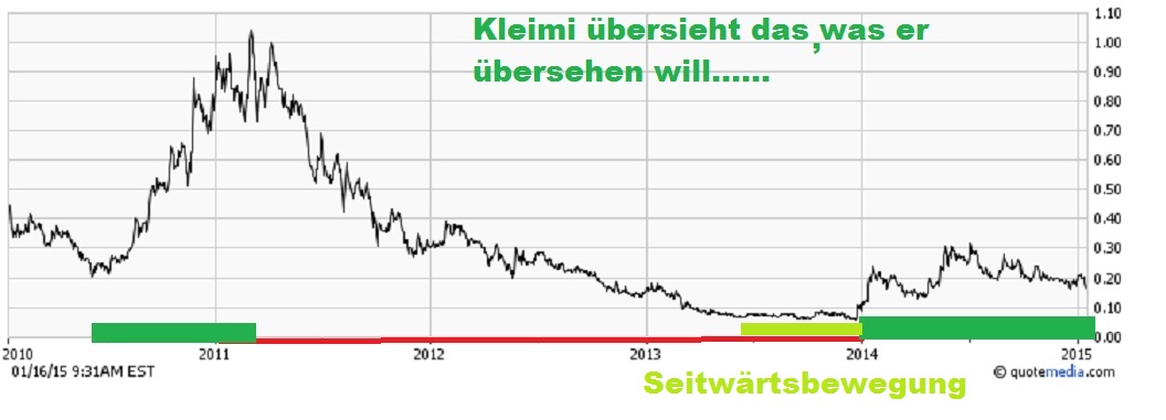 Wahrscheinlich haben alle Aktionäre genau den November/Dezember 2013 goldrichtig erwischt. Und die ganz Großen, wie unser Reiskornstapler, sind bei > 0,20 'raus um jetzt wieder "billig" einzusteigen.