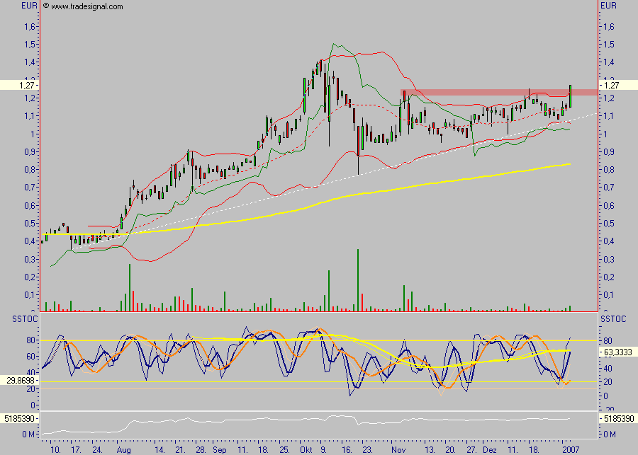 Der Aktienkurs hat sich seit Notierung in Frankfurt von 0,35 € auf 1,39 € vervielfacht und ist seit Oktober in einer Seitwärts- bzw. Konsolidierungsphase (derzeitiger Kurs 1,15 €). Gehandelt werden die Stocks neben Frankfurt, Stuttgart und Bremen vor allem an der NASDAQ OTC. Das Volumen liegt im 6-stelligen Bereich.