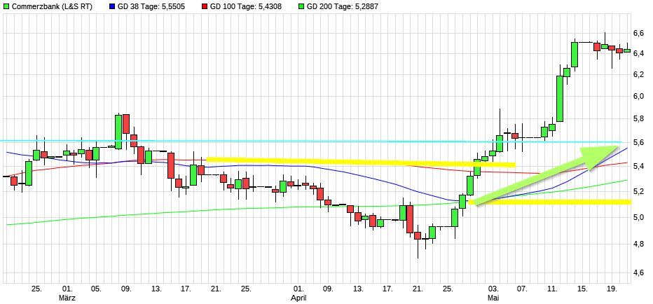 ich könnte jetzt was schlaues schreiben und mal wieder erklären, wie man mit Ariva-Boardmitteln die Chart interpretieren könnte... würde man das nämlich machen, würde auch auffallen, dass der SMA 38 sein eigenem High entgegenkommt (ca. 5,60€) und dann ein neues Szenario beginnt. Daher bremst der Kursanstieg auch ab, weil sich das Szenario noch nicht als positiv oder negativ abzeichnet.