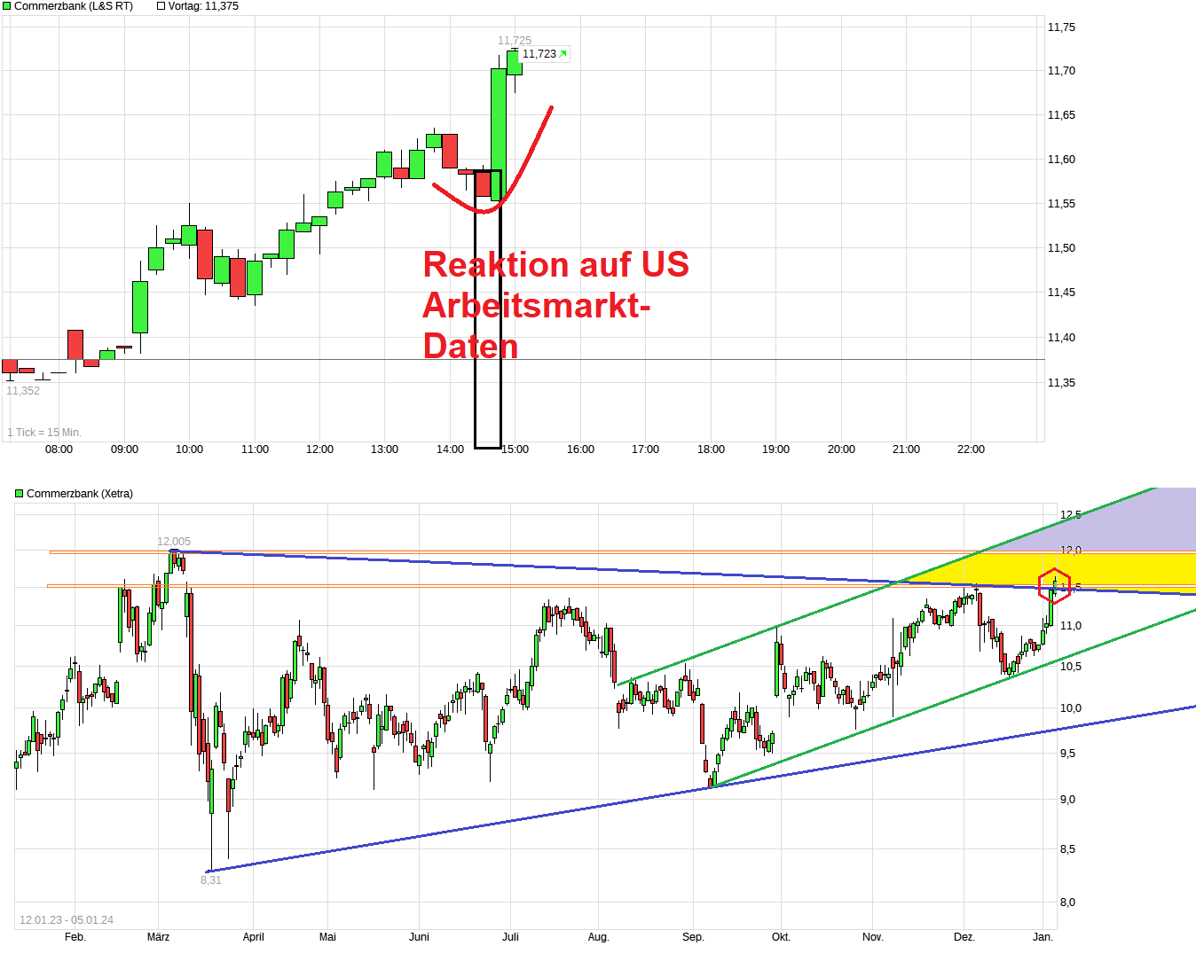 - Die Rendite für zehnjährige US-Notes springt nach ungemütlich starkem Arbeitsmarktbericht schnell an. Jetzt +7,5 bps bei 4,078%