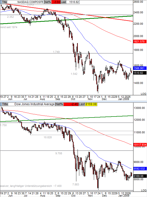 US Indizes - Schon wieder Ende der Erholung?Datum 29.01.2009 - Uhrzeit 19:21 (© BörseGo AG 2000-2009, Autor: Berteit Rene, Technischer Analyst, © GodmodeTrader -