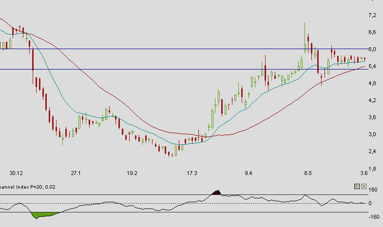 Mehr jedoch die Marken von 5,-- bis 6,--. Meine Wahrnehmung ist, dass um die 5,-- gestützt und nahe 6,-- gedrückt wird.
